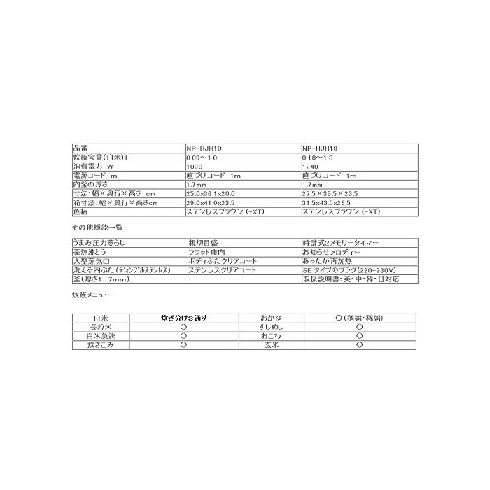 원본상품명: 海外向け力IH炊飯ジャ象印 NP-HJH10 5合炊き 220V SEプラグ 日本製