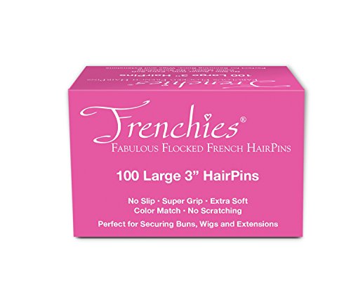 Studio : Frenchies Publisher : Frenchies Binding : Misc. Product Description Frenchies Ultra Flocked French Hairs Pins are FABULOUS! What's the secret? It's all in the innovative coating! Frenchies are made from a traditional U shaped French hairpin and flocked with microfiber coating, creating a high friction soft surface to hold the hair in place for extended periods of time. What's that now? Basically, Frenchies clings to your hair to ACTUALLY HOLD IT, and for like FOREVER....no more sneaking off to the bathroom to touch up, or massive amounts of hair spray, yay save the atmosphere! Soft to the touch coating, Frenchies hair pins have rounded edges - that's right ladies NO MORE SCRATCHED SCALPS! And did we mention, they literally BLEND IN with your natural hair color - you can't see them meaning flawless updo perfection! Frenchies even works great for sleek or baby fine hair - they simply DON'T SLIP. Unlike Bobby pins or other U shaped pins, Frenchies were made durable and to cling to your hair so they don't fall out, hello top knot, French twist, ballet bun.....maybe even Jessica Simpson Extensions or Nicki Minaj Wig, YES PLEASE! Frenchies really are the perfect hair accessory for weddings, dancers, or a fancy party - even celebrities like Eva Longoria, Emily Blunt, and Selena Gomez get RED CARPET READY with them. Available in 4 natural hair colors: Black, Brown, Blond, and now RED! Each standard box comes with 10 small (2in long) and 10 large (3in long) pins, or opt for the new PRO PACK that come with 100 small (2in) or 100 large (3in) pins, to give you that perfect, polished look, day or night, every time! 0