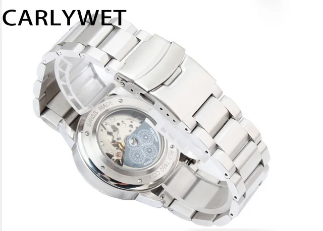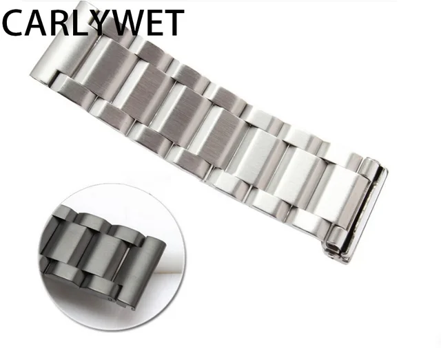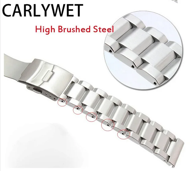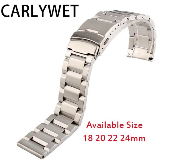 | [해외] 18 20 22 24 미리메터 새로운 남자 실버 닦았 단단한 스테인레스 스틸 팔찌 시계 밴드 스트랩 벨트 더블 푸시 걸쇠 relogio masculino |