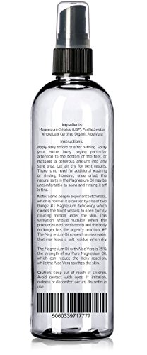 -. Title : 12oz Magnesium Oil with ALOE VERA - LESS ITCHY - Made in USA - FREE eBook - SEE RESULTS OR MONEY-BACK - Best Cure for Restless Legs, Leg Cramps, Sore Muscles. Get Healthy Hair & Skin and Sleep Better!