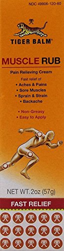 -. Binding : Health and Beauty -. Brand : Tiger Balm -. EAN : 0039278440102 -. Feature : Fast Relief of Aches and Pain / Sore Muscles, Sprain and Strain, Backaches / Tiger Balm Muscle Rub is a high quality analgesic cream specially formulated for active people / 2 oz (60 g) per tube -. IsAdultProduct : 0 -. Label : PRINCE OF PEACE ENTRP -. Manufacturer : PRINCE OF PEACE ENTRP -. MPN : T 440202 -. PackageQuantity : 2 -. PartNumber : T 440202 -. ProductGroup : Health and Beauty -. ProductTypeName : HEALTH_PERSONAL_CARE -. Publisher : PRINCE OF PEACE ENTRP -. Size : 2 oz (60 g) -. Studio : PRINCE OF PEACE ENTRP -. Title : Tiger Balm Muscle Rub Pain Relieving Cream, 2 Ounce Per Tube (2 Tubes) -. UPC : 039278440102