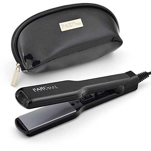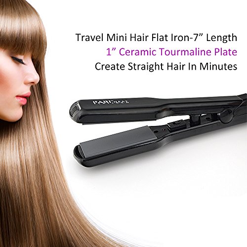 FARIHEAT Travel Mini Hair Flat Iron, Dual Voltage 1 Inch Ceramic Tourmaline Hair Straightener with Travel Pouch (Black)