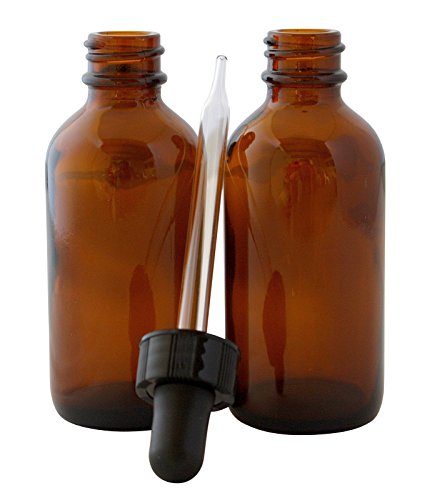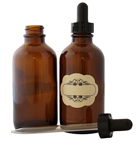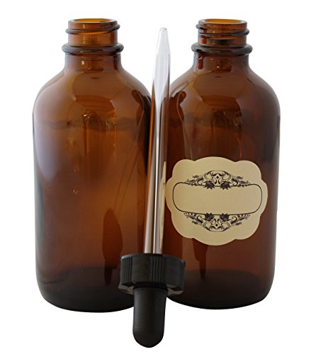 2 OZ (60 ML) Amber glass dropper bottles PLUS BONUS - decorative labels, Multipurpose great for light-sensitive liquids, essential oils. Use in bath, kitchen AND laboratory. 4-PACK
