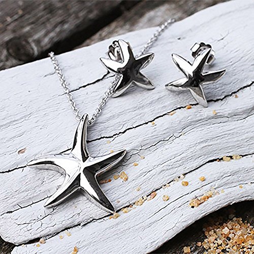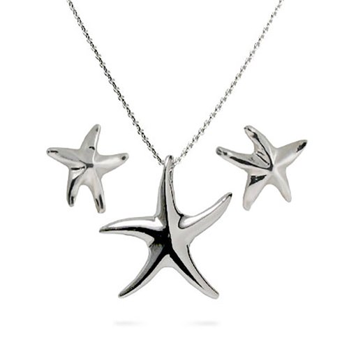 -. Title : Sterling Silver Starfish Necklace and Earrings Set
