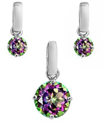 -. Title : Rainbow Colored Cz .925 Sterling Silver Pendant Necklace & Earrings