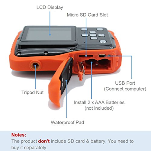 Acsurpo WDC-5262 is one 12 megapixels HD Mini waterproof digital camera for kids, it can work underwater (up to 3 meters), the size is small, it has flashlight, mic, speaker. The kids are very easy to take pictures, video and play it. This waterproof digital camera is a best gift for your children.