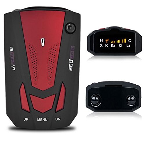 Radar Detector, Petcaree High Performance V7 Police Radar Laser Detectors for Cars with Voice Alert and Car Speed Alarm System with 360 Degree Detection (Red)