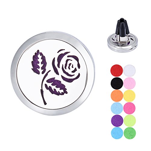 Tornado Rose Aromatherapy Car Air Freshener Stainless Steel Essential Oil Diffuser Locket with 4 Vent Clips 12 Refill Pads