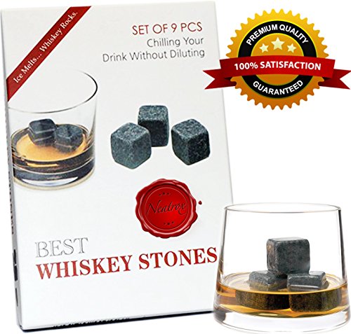 -. Brand : Neatrox -. Color : Grey -. EAN : 0736649832503 -. Feature : NO DILUTION. The last sip of your drink will be just as pleasant as your first thanks to these whiskey stones chilling rocks. Neatrox whiskey stones are your solution to no dilution! / PERFECT for whiskey, scotch, bourbon and other libation aficionados who enjoy their beverages with a slight chill. Neatrox whiskey stones make the perfect gift, nicely packaged with bonus storage bag for your drink rocks. / SMOOTH SIP. Soapstone cubes are designed to get your drink to the perfect sipping temperature. These whiskey stones are not intended to cool as much as ice cubes. / DRINK NEAT. Whiskey stones allow your fine spirits to be tasted neat so you can enjoy their natural flavors and aroma. Keep your premium drinks and spirits tasting premium! / SIMPLE to use and reuse. Just wash then store these whiskey stones in your freezer for a few hours and they are ready to use. Virtually no work to get these whisky rocks clean and ready to be reused. -. Label : Neatrox -. Manufacturer : Neatrox -. Model : G-09 -. MPN : G-09 -. PackageQuantity : 1 -. PartNumber : G-09 -. ProductGroup : Kitchen -. ProductTypeName : KITCHEN -. Publisher : Neatrox -. Studio : Neatrox -. Title : Whiskey Stones - Premium Chilling Rocks for Whiskey Scotch or Other Fine Drinks -. UPC : 736649832503