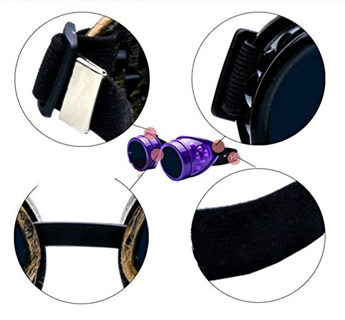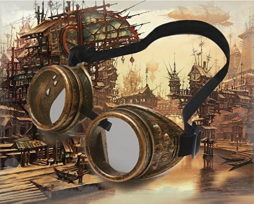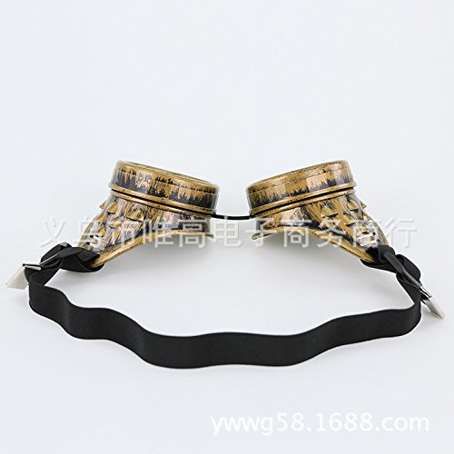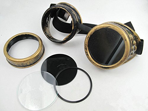-. Feature : One Pair of goggles(consists of 1x frame,2x clear lens,2x tawny lens,2x washer) / A necessary accessory for Steampunk's wardrobe / The frame made of high quality hard coated plastic,which makes a vintage feeling / Material:Plastic,glass,elastic band / Lens Detais:2 Pair of lens in the goggles frame