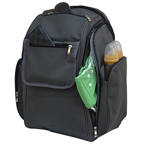 Stylish diaper backpack for all of baby's essentials, complementary waterproof changing pad also included.