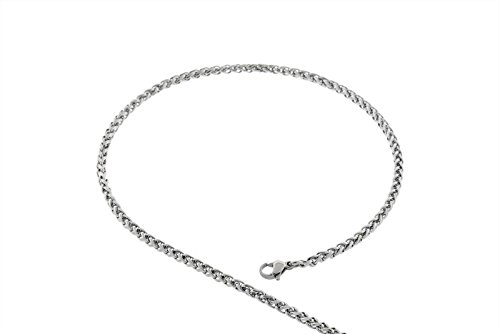 - Feature : High Quality Wheat / Braided Chain Necklace / Made from 316l Stainless Steel (hypoallergenic) / Width is 3mm / Lengths: 18", 20", 22", 24", 26", 28", 30", 32", 34", 36", 38", 40" / Assembled in the USA