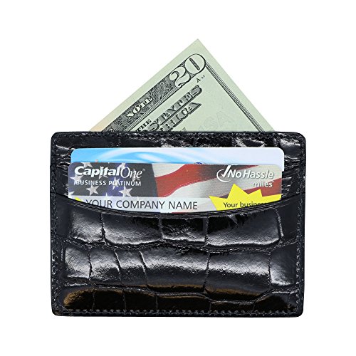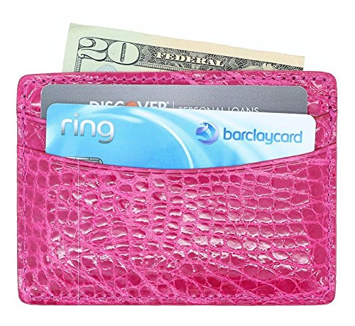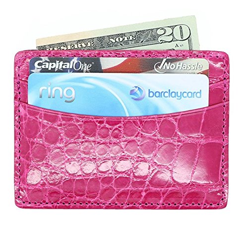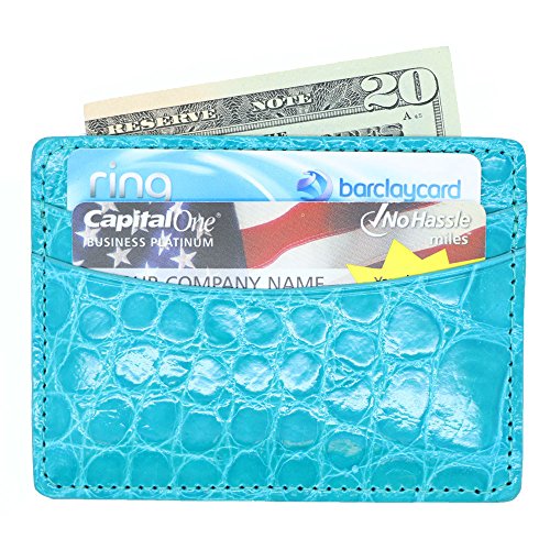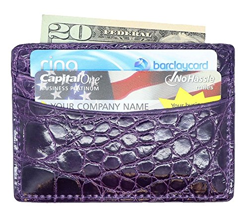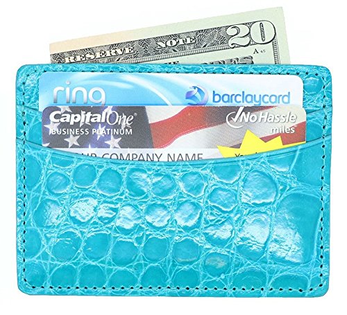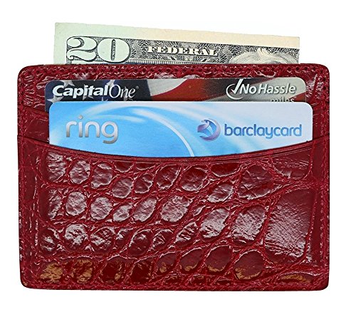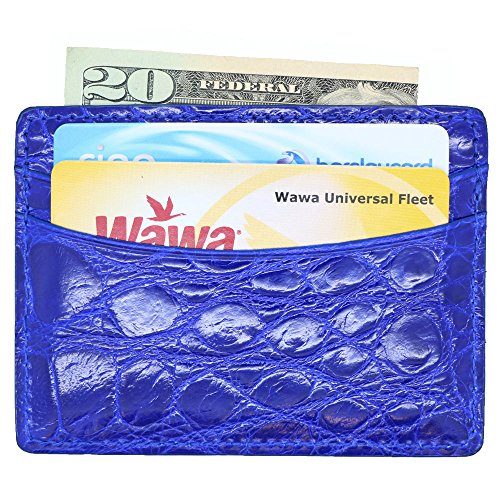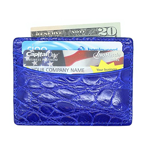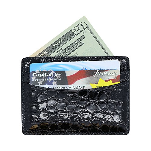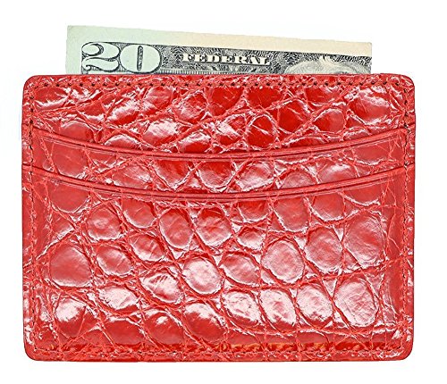 Choose which color Authentic Alligator 5 Pocket Credit Card Case slim wallet you want from the available assortment. These 3-inch x 4-inch Card Cases have a total of 5 pockets. It has 2 pockets on each of the 2 sides and 1 center pocket that is perfect for holding folded bills. A slimline wallet is commonly used by many who want a comfortable to carry or easy to stow alternative to a traditional bulky wallet. When you buy directly from Real Leather Creations, you get factory direct pricing because you are buying directly from the American Manufacturer. Real Leather Creations has been producing high-quality leather and genuine exotic skin products for major retailers and luxury brands around the world since 2000. Thank you for your consideration and your valued business. This item is currently not eligible for international shipping. 0