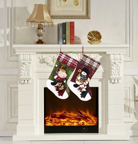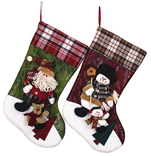 YAMUDA 2 Pcs Set XMAS 3D Lively Christmas Stockings 17.8 Inches Long Santa Claus and Snowman Design