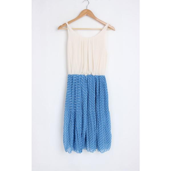 メリハリのあるドット柄が印象的。お出かけが楽しみになるワンピースです。