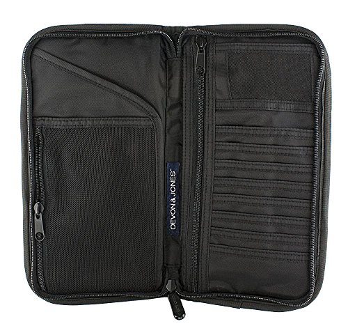 -. Feature : CONSTRUCTION : Heavy duty 100% Polyester construction for red durability. / DESIGN : It is designed to hold all of your important travel documents, including your passport, credit cards, airline tickets, boarding passes, or whatever else you may need to keep secure while traveling. / POCKETS : Features 4 separate pockets inside, with 8 slots for credit or debit cards, phone cards, gift cards, etc. Has a mesh window pocket for ID. There is also an additional pocket on the outside front to keep any documents that need to be readily accessible. / TO KEEP : Zippered to keep documents secure and organized. / SIZE : This wallet measures 10 1/2" long x 5 1/2" when closed.