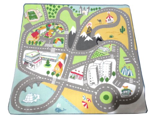 Product Description Backing: Latex. Great for keeping the kids busy for hours. Great for indoor or outdoor use. Rolls up for easy storage. Easy to clean Product dimensions Length: 4 ' 7 " Width: 4 ' 4 " Pile coverage: 0.88 oz/sq ft Max. pile length: 0 " Length: 140 cm Width: 133 cm Pile coverage: 270 g/m² Max. pile length: 3 mm 0