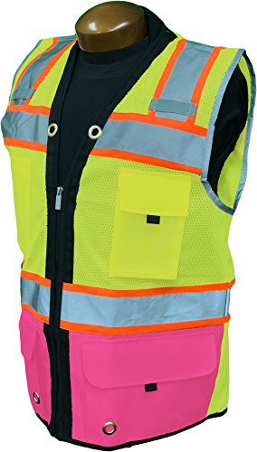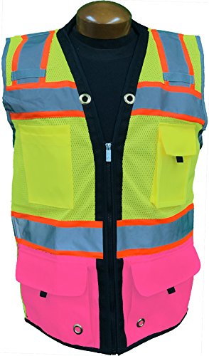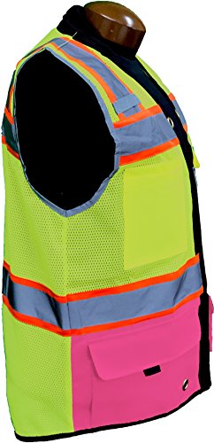 SHINE BRIGHT SV544PK | Premium Surveyor's High Visibility Safety Vest | 2 Tone Lime / Pink with Reflective Strips |ANSI CLASS 2 |Soft and Breathable |Heavy Duty Zipper Front | Size S