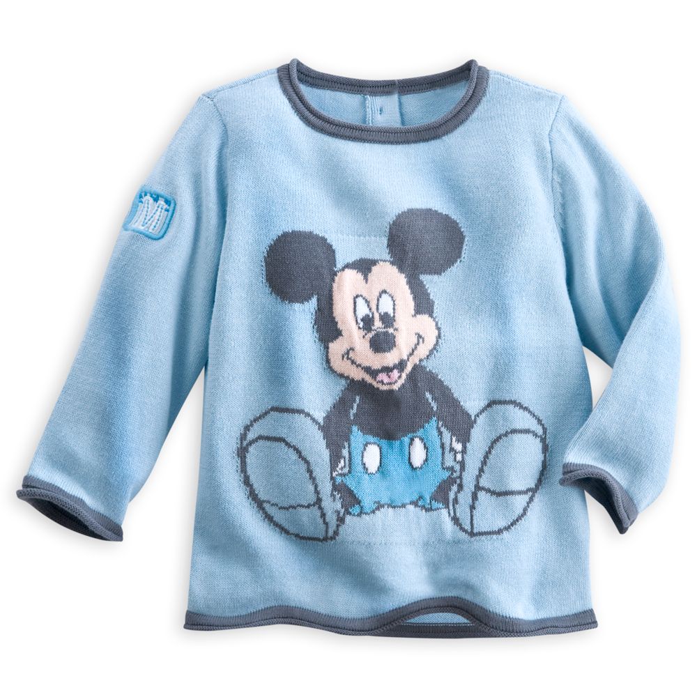 Baby blue Mickey will keep your little one in stitches with this knitted sweater. Mickey is woven into the design of this cute cotton top that has contrasting gray trim so they'll be as stylish as they are cozy. See more Magic in the details... Mickey artwork is woven into the cotton fabricContrasting rolled up gray trimThree button fastening at backThe bare necessities 100% cotton, exclusive of decorationImported |