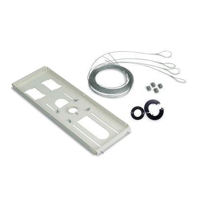 -. Feature : Sits above ceiling tile for a hidden installation / 9" of continuous movement allows for precise placement of a projector / Moveable 1.5" pipe coupler offers easy relocation without dragging your entire toolbox into the rafters with you / Unique electrical knockouts accept almost any electrical box / Includes four 25' steel braided cables with quick locking adapters