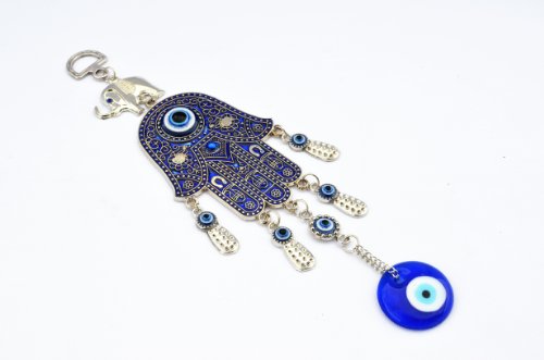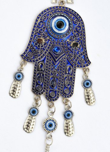 -. Binding : Kitchen -. Brand : Betterdecor -. Color : Blue -. EAN : 0639266235705 -. Feature : The sale is for blue evil eye on Hamsa hand a free betterdecor pounch / Total :8.5" in length; Diameter is 2.5"; material : metal and glass / It is a good gift ! -. IsAutographed : 0 -. MPN : B006C4VWQY -. PartNumber : B006C4VWQY -. ProductGroup : Home -. ProductTypeName : HOME -. Title : Blue Evil Eye with Hamsa Hand Protection Hanging Ornament -028 -. UPC : 639266235705