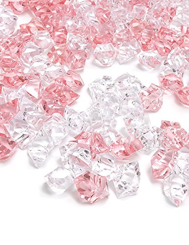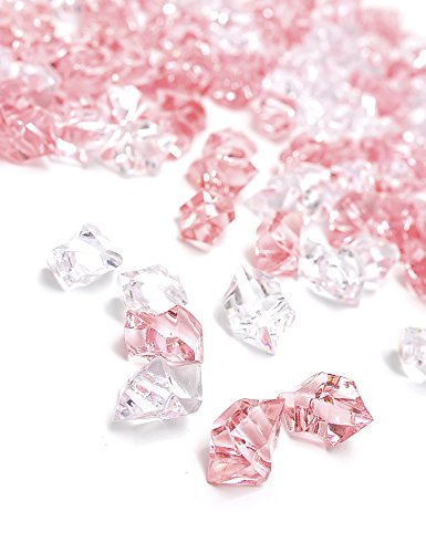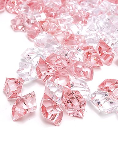 DomeStar Acrylic Ice Cubes, Crystals, Gems Vase Fillers, 150 Pcs, Pink and Clear, the Perfect Valentine's Day Gift