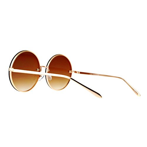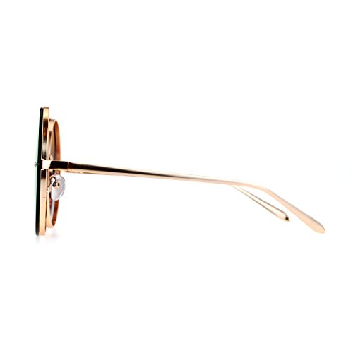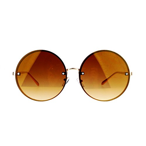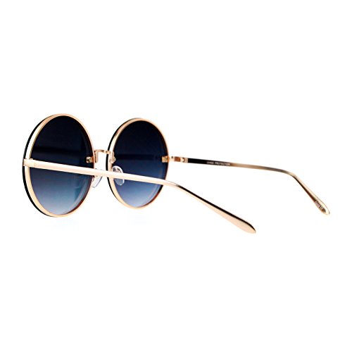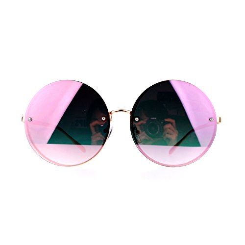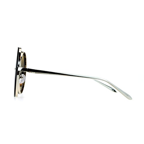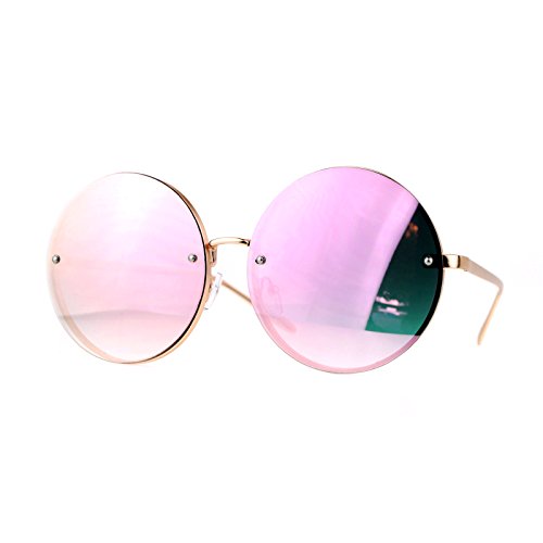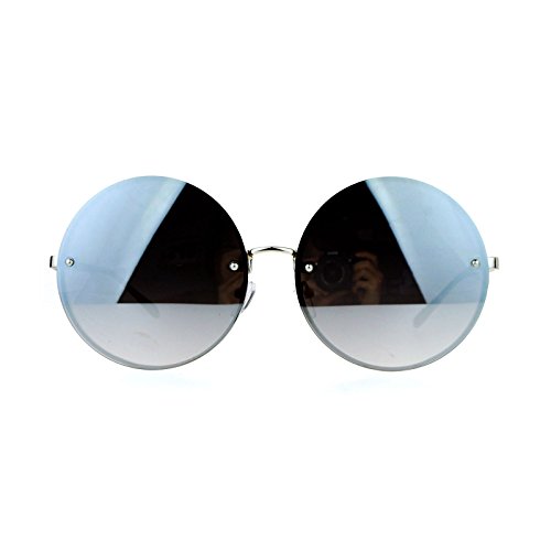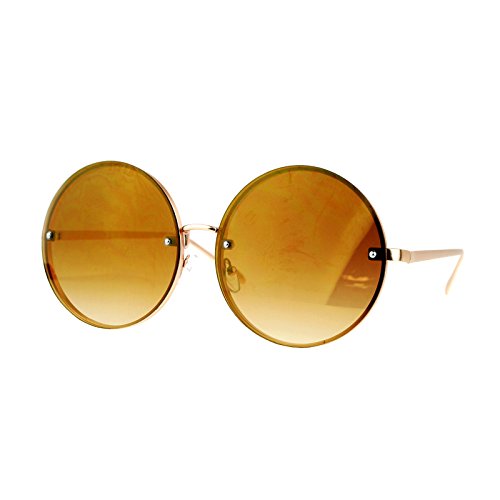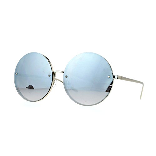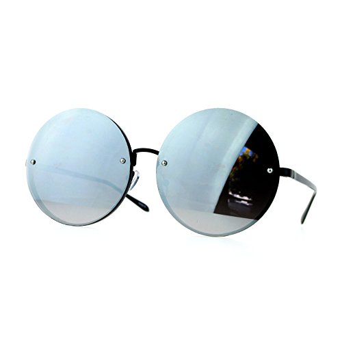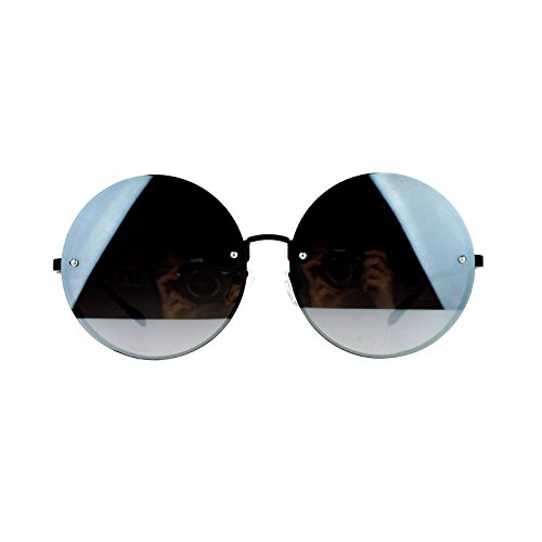 Super Oversized Round Sunglasses Womens Mirror Lens Back Metal Rims
