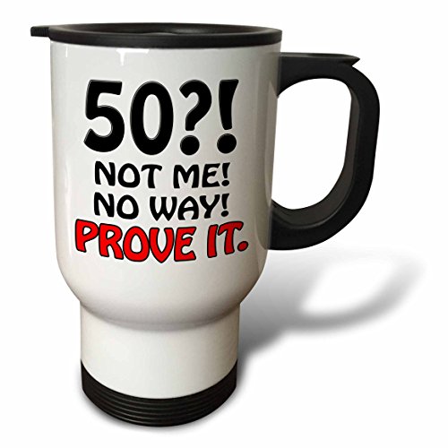 3dRose tm_163824_1 50 Not Me No Way Prove It, Happy 50th Birthday Stainless Steel Travel Mug, 14-Ounce
