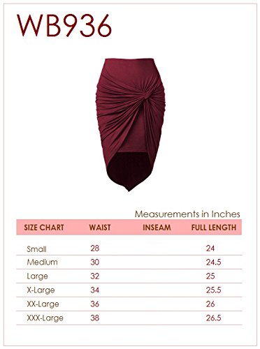 -. Binding : Apparel -. Brand : Made By Johnny -. Department : womens -. Feature : Womens side knotted midi skirt / Knit drape featuring a knot twist front detail / Mini to midi length skirt / Lined / Asymmetrical banded waist wrap skirt / Elastic Waistband / 15.5"- 29" full length, 26" waist. Measured flat from size Small. / HAND WASH COLD / LINE DRY / Please check the size chart in our images to ensure your order / Color Disclaimer : Due to monitor settings, monitor pixel definitions, we cannot guarantee that the color you see on your screen as an exact color of the product. We strive to make our colors as accurate as possible. however, colors are approximations of actual colors. -. Model : MBJWB936 -. ProductGroup : Apparel -. ProductTypeName : SKIRT -. Title : MBJ Womens Draped Wrap Style High Low Midi Skirt - Made in USA