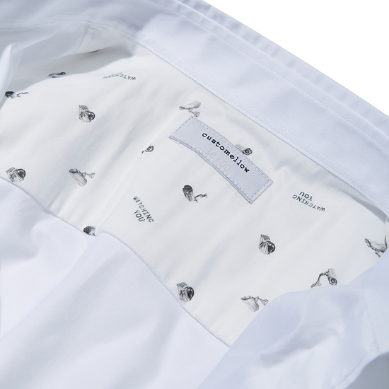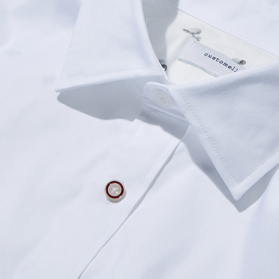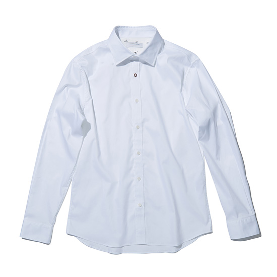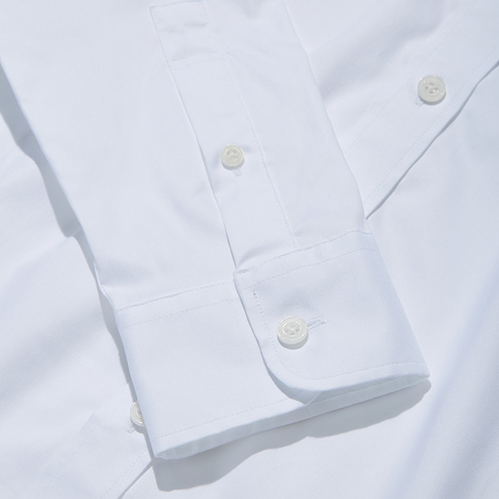 - 부드럽게 코튼 혼방 소재가 돋보이는 남성 화이트 드레스 셔츠.
