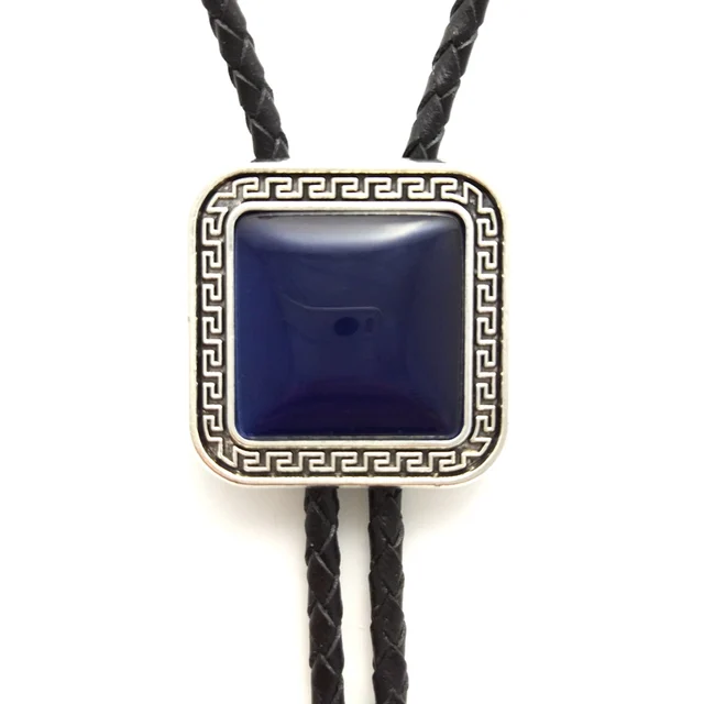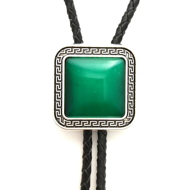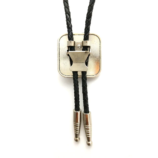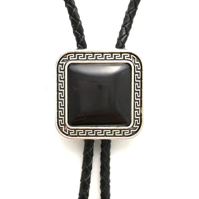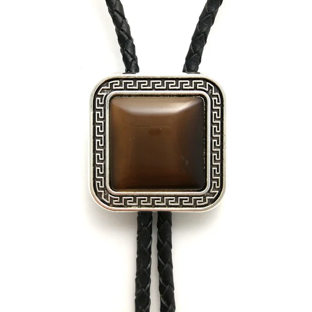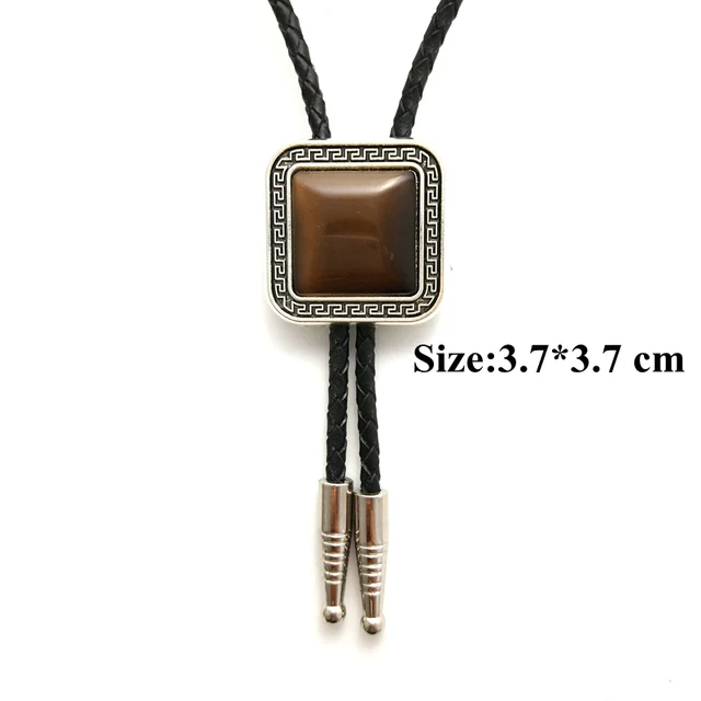 | [해외]남성 액세서리 카우보이 볼로 타이 블랙 가죽 체인 레트로 토템 광장 금속 버클 브라운 돌 장식 |