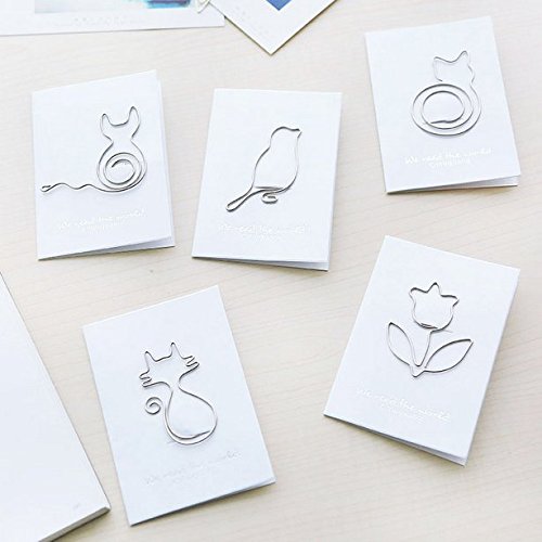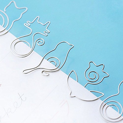 Chris-Wang 10Pcs Cute Exquisite Mini Metal Paper Clips, Bookmarks, Page Finders for Office School Use (Bird/Flower/Margay/Cat/Sleep Cat)
