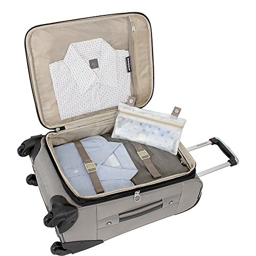 -. Feature : Durable material resists scuffing and tearing / Interior zippered mesh accessory pocket / Adjustable compression straps / 360 spinning wheels / Telescoping locking handle