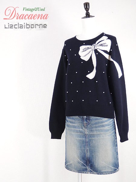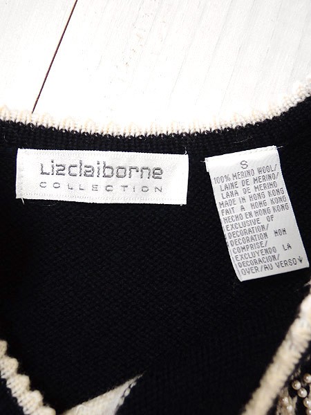 Ladies ブランドLiz claiborne リズクレイボーン カラー紺・白 メール便不可 コンディション★★★ 素材メリノウール 表記サイズS 実寸サイズ 着丈 54 cm 身幅 50 cm 肩幅 45 cm 袖丈 57 cm ※ウエスト・ヒップ以外は平置き採寸【code】#d