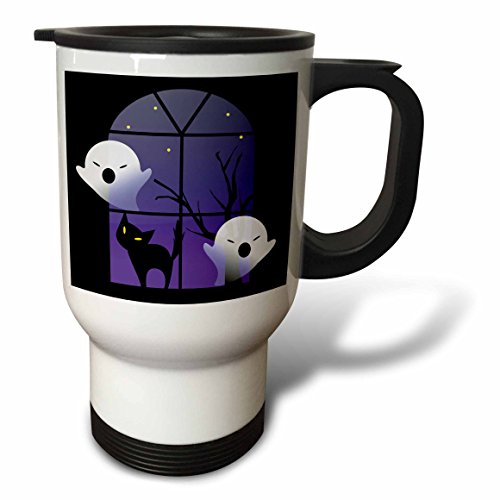 3dRose tm_200323_1 Halloween Ghosts and Cat in House, Travel Mug, 14-Ounce, Stainless Steel