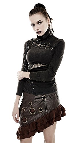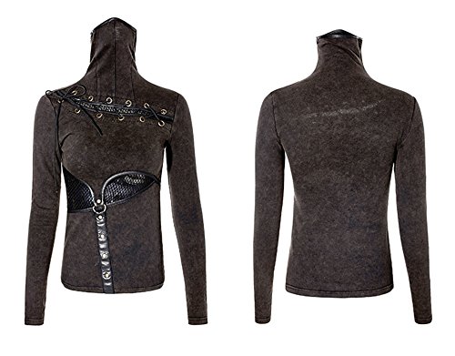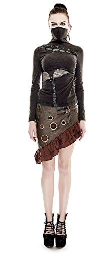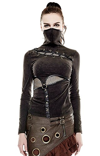 -. Title : 口元まで覆うマスクスタイルとシースルーメッシュが特徴的なアシンメトリーデザイン長袖Tシャツ/カットソー スチームパンク ブラウン レディース Mサイズ T432BRFM