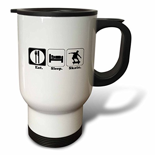 3dRose 3dRose Funny Hobby Lifestyle Design Eat Sleep Skateboard - Travel Mug, 14oz, Stainless Steel (tm_116986_1), , White