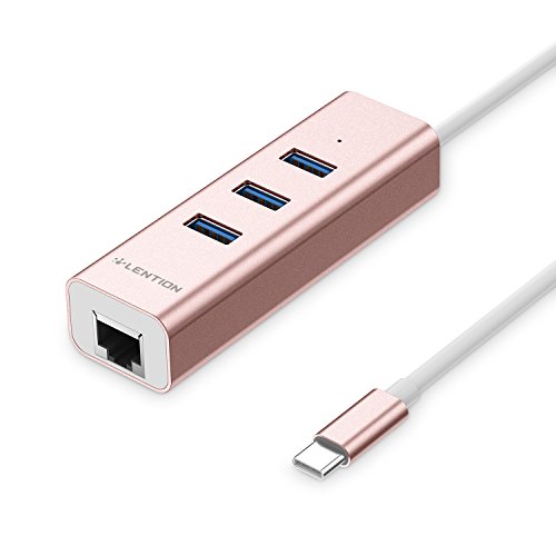 -. Title : LENTION USB-C to 3-Port USB 3.0 Hub with Ethernet Network Adapter for Apple MacBook 12", 2016 2017 MacBook Pro 13" / 15", Windows PC, Notebooks and More (Rose Gold)