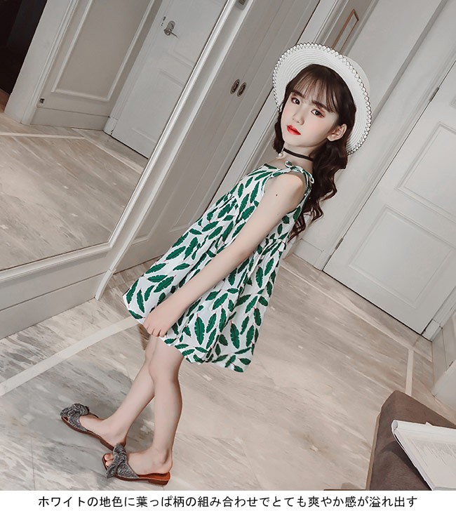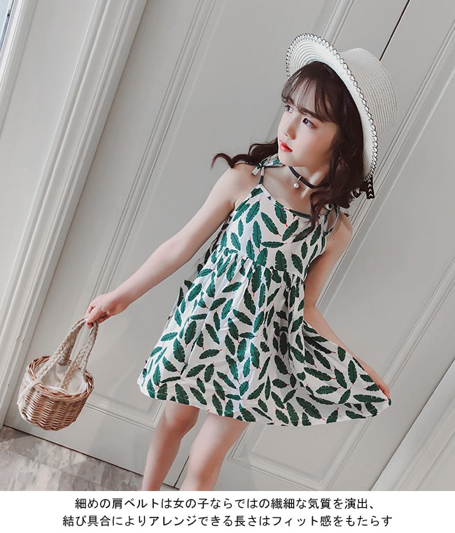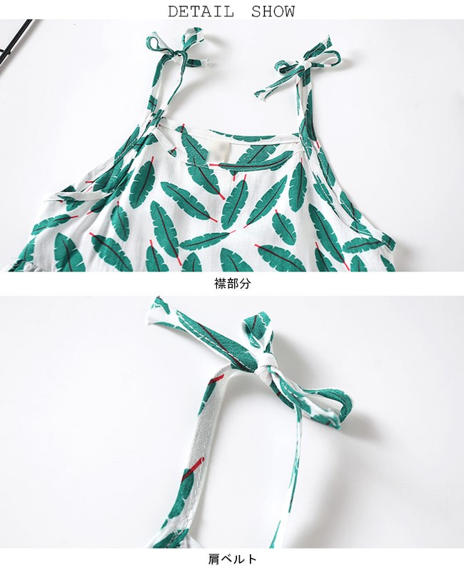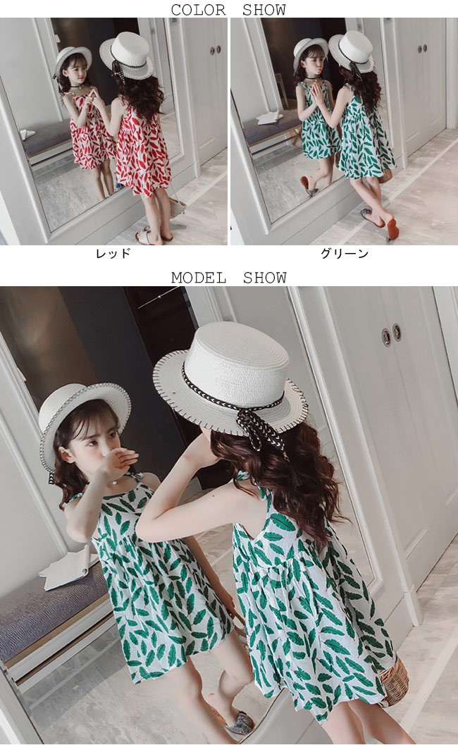 女の子 キャミワンピ 子供服 ワンピース ショート丈 花柄 ノースリーブ 女児 夏物 薄手 肩ベルト調整可 リゾートウェア キッズ女の子用のキャミワンピが登場ホワイトの地色に葉っぱ柄の組み合わせでとても爽やか感が溢れ出す細めの肩ベルトは女の子ならではの繊細な気質を演出、結び具合によりアレンジできる長さはフィット感をもたらすリゾート気分満載のデザインで夏らしい香りを漂わせ、カジュアル感もたっぷりシンプルでゆったりとしたシルエットで誰でも気軽に着こなせる一枚カラー:レッド グリーン素材 ポリエステルサイズ(cm) 110 120 130 140 150 160110 総丈60 バスト64120 総丈64 バスト68130 総丈69 バスト72140 総丈73 バスト76150 総丈78 バスト80160 総丈82 バスト84ご注意:※サイズは平置きサイズです。素人採寸ですので、若干の誤差がございます、ご了承ください。