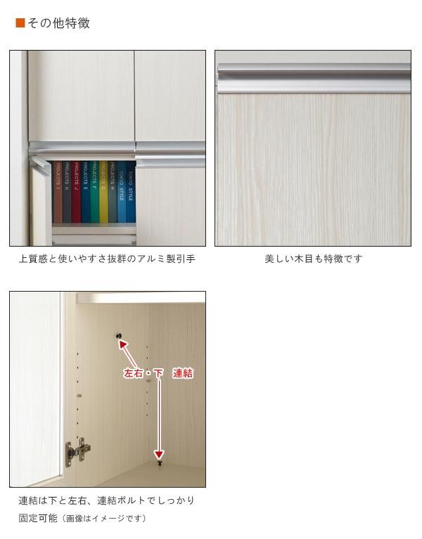 | 素材・材質 | ホワイトウッド柄特殊プリント化粧板 引手:アルミ |