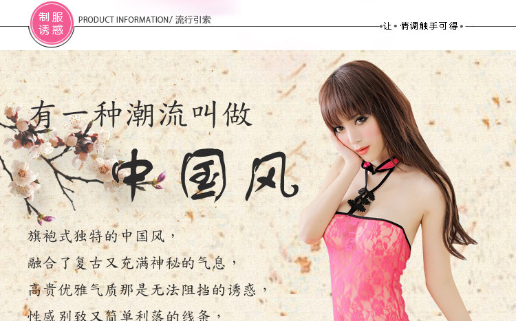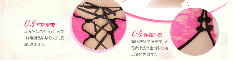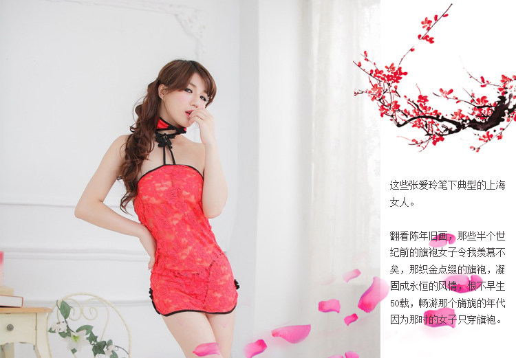 【女士情趣内衣古典旗袍制服诱惑套装真人透明蕾丝短裙性感露背睡衣】