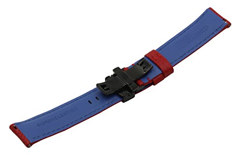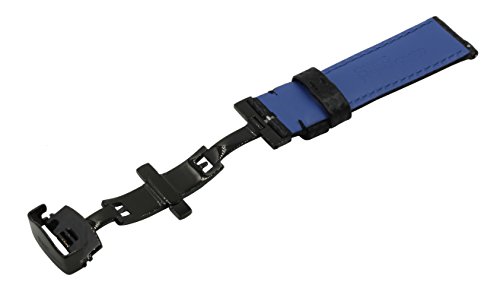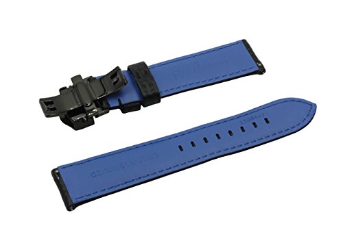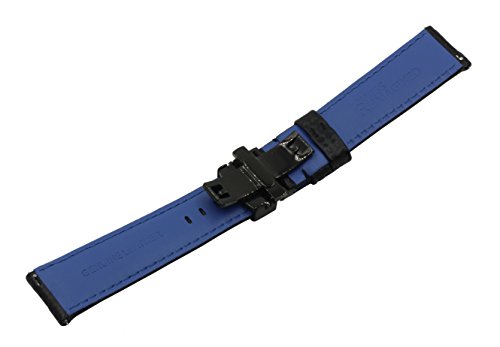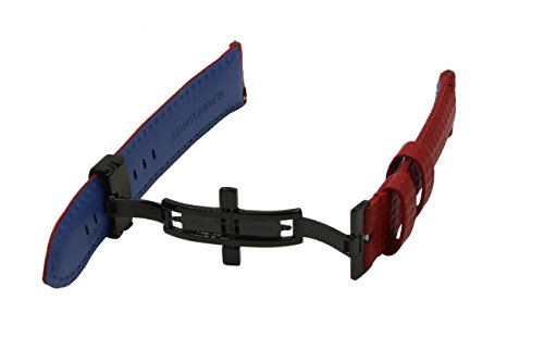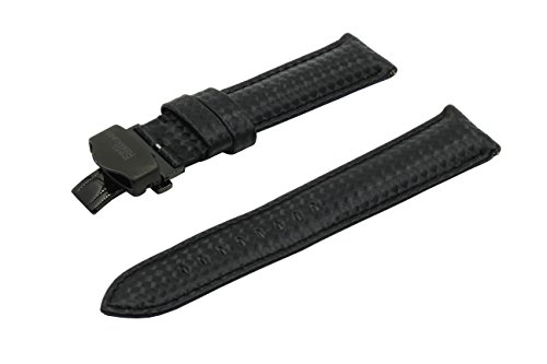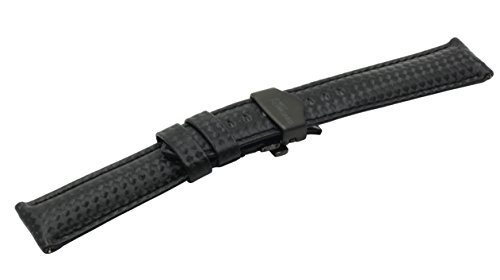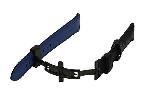Product Description Carbon Fiber Grain Padded Italian Calfskin Leather Watch Band With Brushed Black Stainless Steel Butterfly Deployment Buckle and Quick Release Spring Bars 0