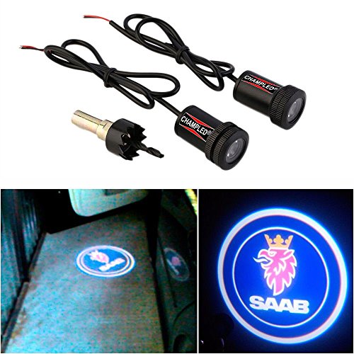 -. Title : CHAMPLED For SAAB Laser Projector Logo Illuminated Emblem Under Door Step courtesy Light Lighting symbol sign badge LED Glow Car Auto Performance Tuning Accessory