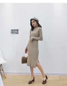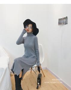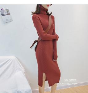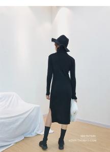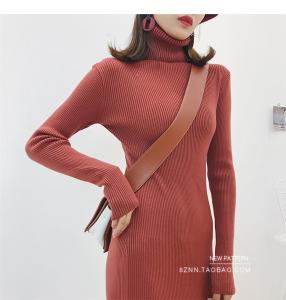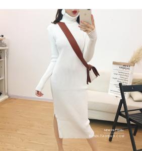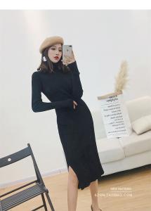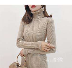 ハイネック ニットワンピース リブニット タートルニット 長袖 タイト フィット セーター プチプラセール 秋冬