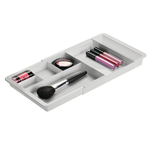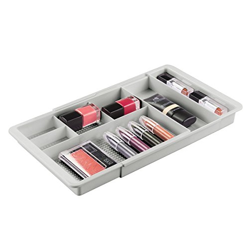 mDesign Expandable Bathroom Drawer Organizer for Vanity Cabinet to Hold Makeup, Beauty Products - Light Gray