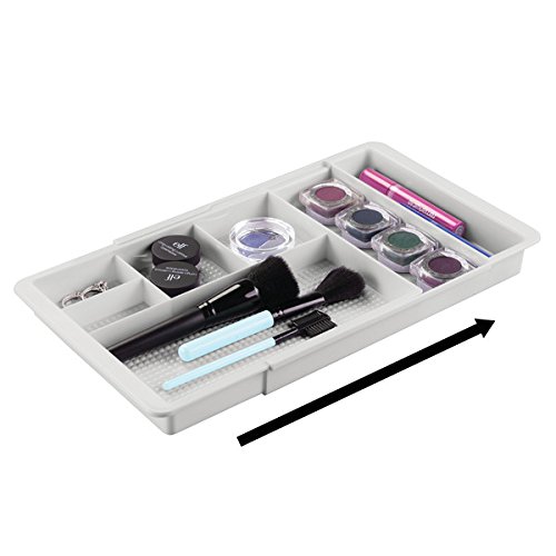 Expands up to 18.5" to accommodate the size of your drawers -- Features 6 compartments when not expanded and 1 extra section when fully expanded for a versatile storage option