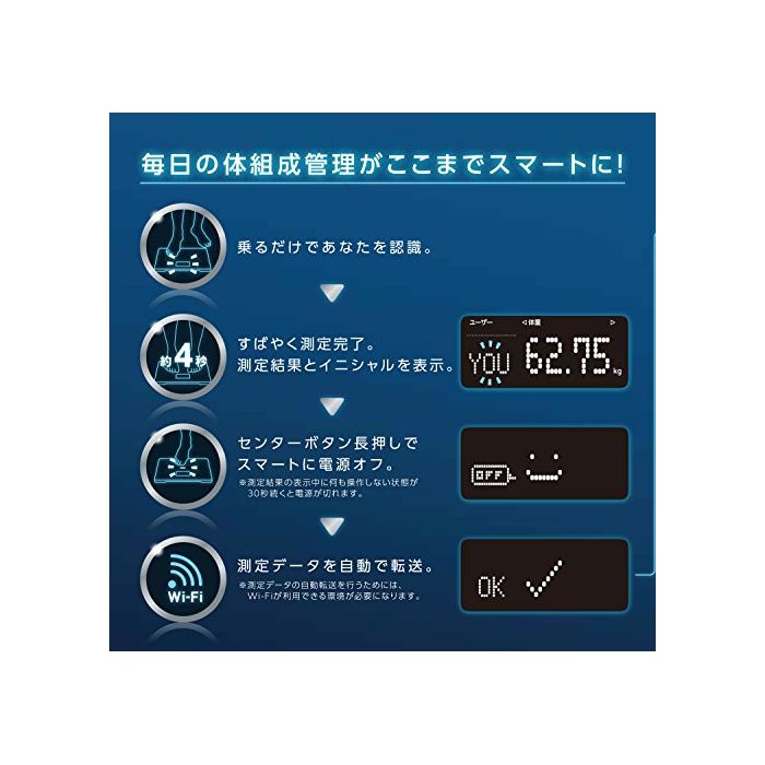 원본상품명: オムロン 【自動電源ON】【4秒測定】【重50g位表示】【PC/スマホ Wi-Fi通信機能搭載】重組成計 カラダスキャン HBF-253W-BK
