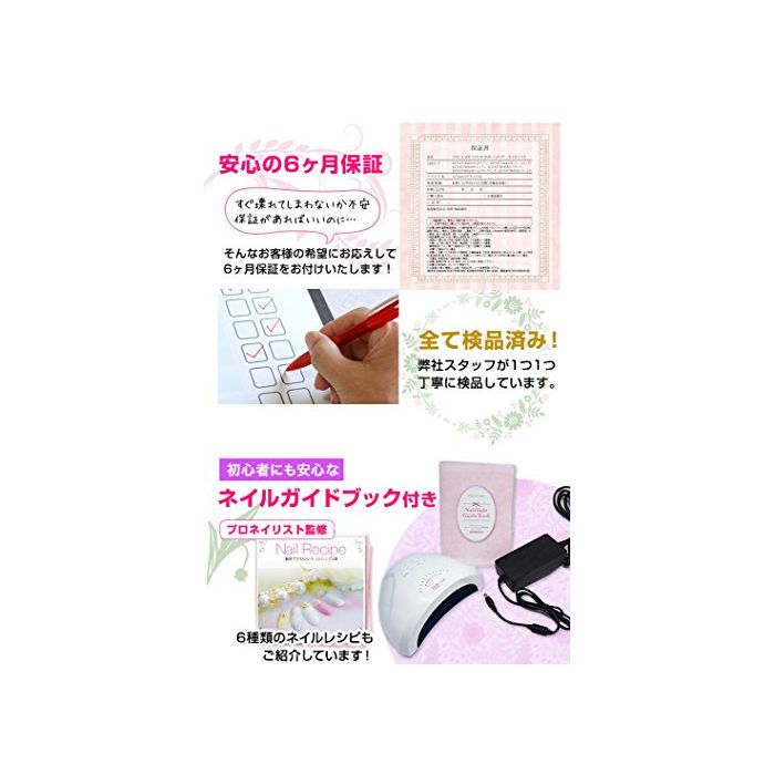 일본어 설명서와,6인지(든가) 월 보증서를 붙여서 있습니다.이번에 대호평이게 감사를 담아 프로 네일리스트 감수에 의한 젤 네일의 기본적인 칠 분(쪽,편)나,추천의 네일 레시피(요리처리법)6선발을 추가 했습니다.이 기회에 꼭 입수해 주세요.
