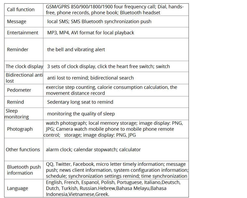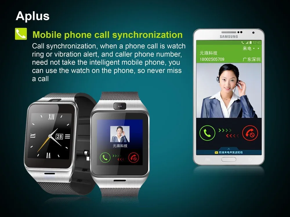 Call synchronization,when a phone call is watch ring or vibration alert,and caller phone number,need not u0026nbsp;take the intelligent mobile phone,you can use the watch on the phone,so never miss a call.