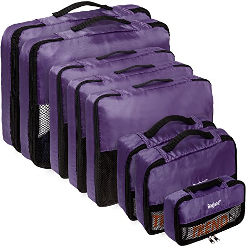 -. Binding : Apparel -. Brand : BagLane -. Department : mens -. Feature : VARIETY OF SIZES - This 8-piece set features 8 various cube sizes (XS-L) that allows you to store different items from clothing to toiletries. Differing sizes also allows them to be fit and be stored in any type of daypack, backpack, or suitcase, in order to fit your unique traveling style. This can help you easily identify your belongings, making for a more organized and efficient way to travel. / ORGANIZE CLOTHING - Pack like items together in each cube. Easily store pants, shorts, and long-sleeved shirts in the large size, short sleeve shirts in the medium size, intimates in the small size and accessories in the smallest size. By filling the cubes to capacity with tightly rolled or neatly folded clothing, the items will be wrinkle free and stay in place from point A to point B. / EASY TRAVEL - Makes packing and unpacking a breeze. Easily remove one packing cube to get exactly what you need, instead of sifting and searching through piles of clothing in your over-stuffed and unorganized suitcase. / QUALITY FEATURES - Made from a lightweight and durable TechLife Diamond material and features sturdy zipper pulls. A cus and security friendly see-through mesh paneling offers your lage visibility and a quick trip through security lines. / DIMENSIONS - This 8-piece set includes sizes 1 X-Small (9" x 3.75" x 3"), 2 Small (11" x 6.75" x 3"), 3 Medium (13.75" x 9.75" x 3") and 2 Large (17.5" x 12.75" x 3.25"). -. MPN : Baglane -. PackageQuantity : 1 -. PartNumber : Baglane -. ProductGroup : Apparel -. ProductTypeName : BAG -. Title : Baglane Packing Cubes - TechLife Travel Lage 8pc Set (Various Sizes)